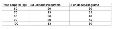 insulina U-100) en la primera semana, seguida de un aumento de 5